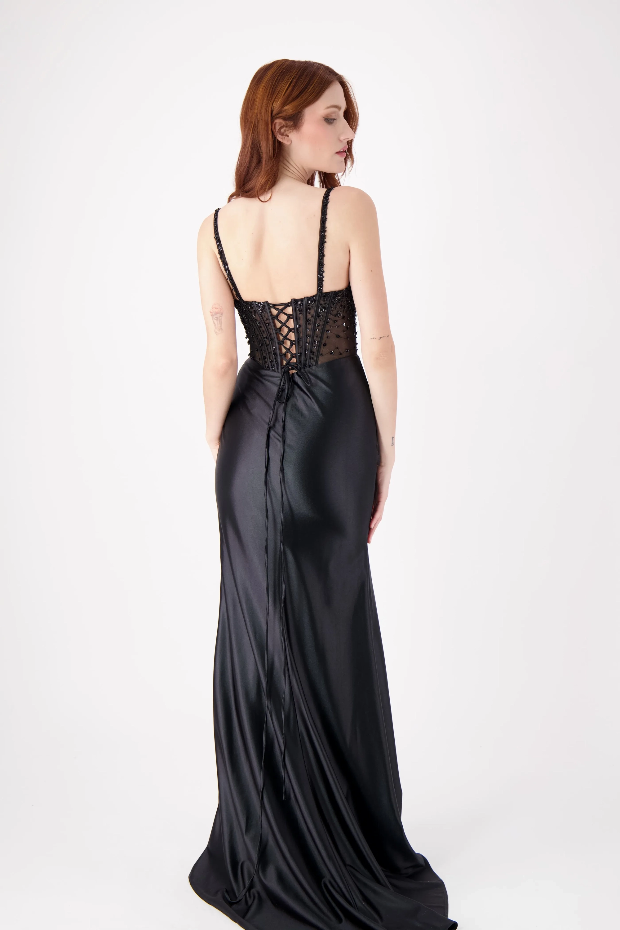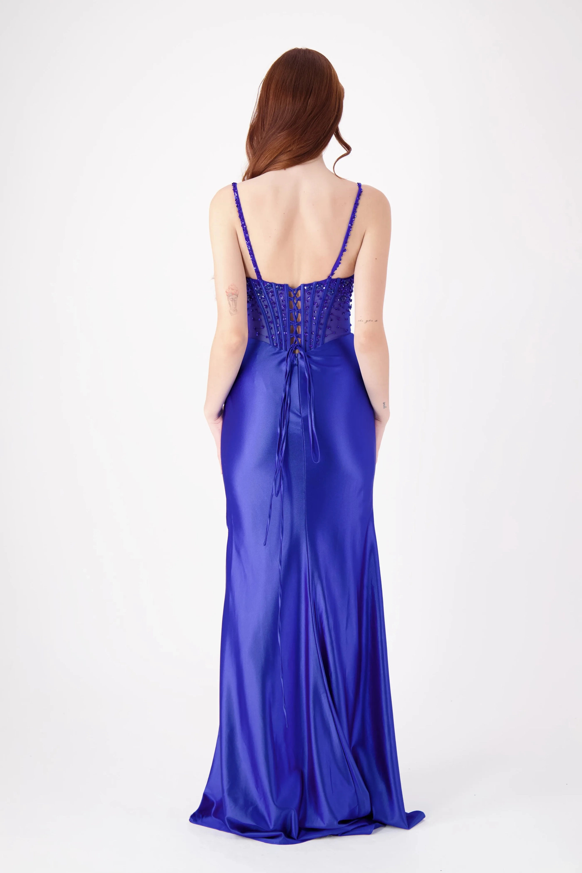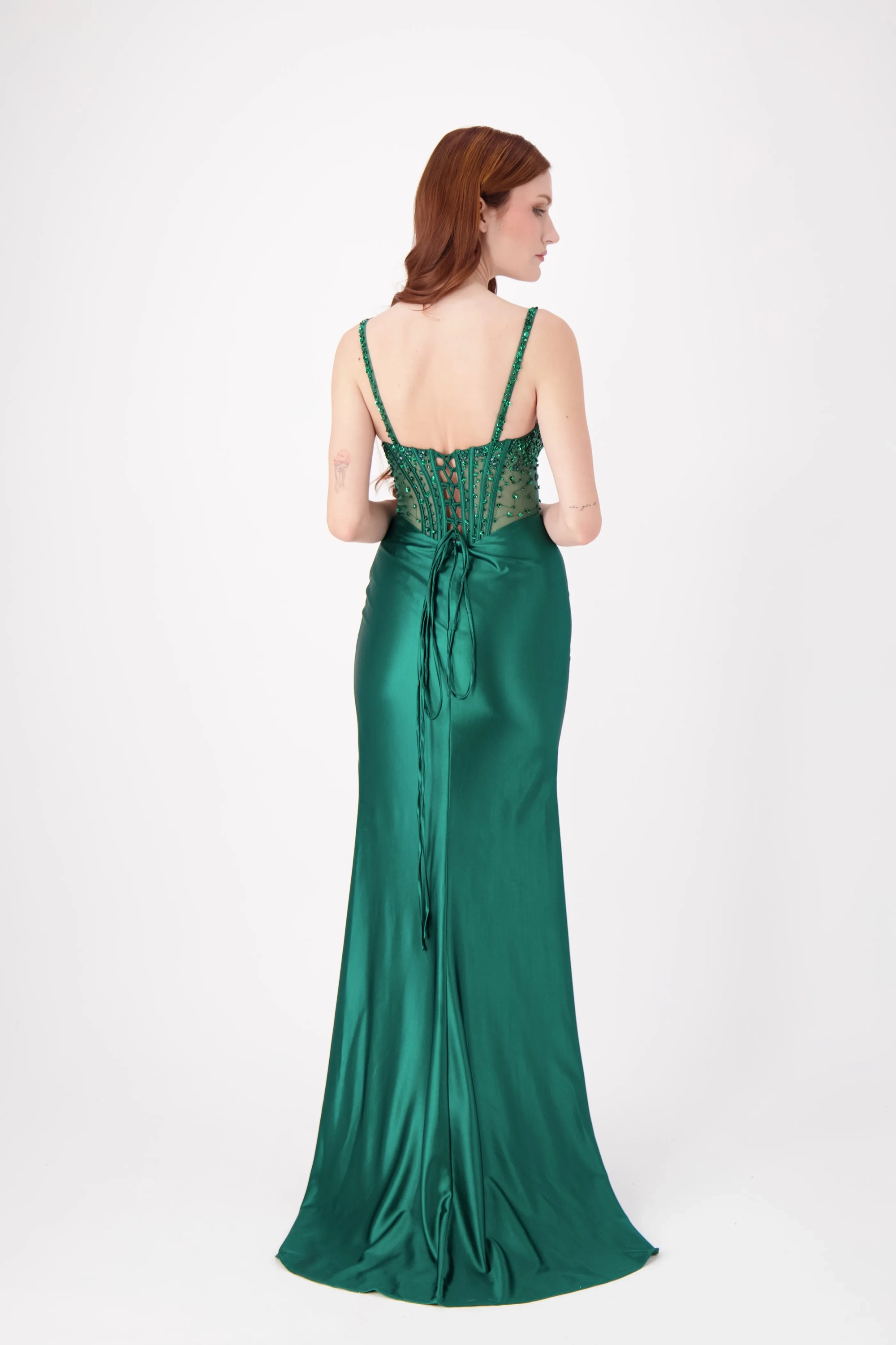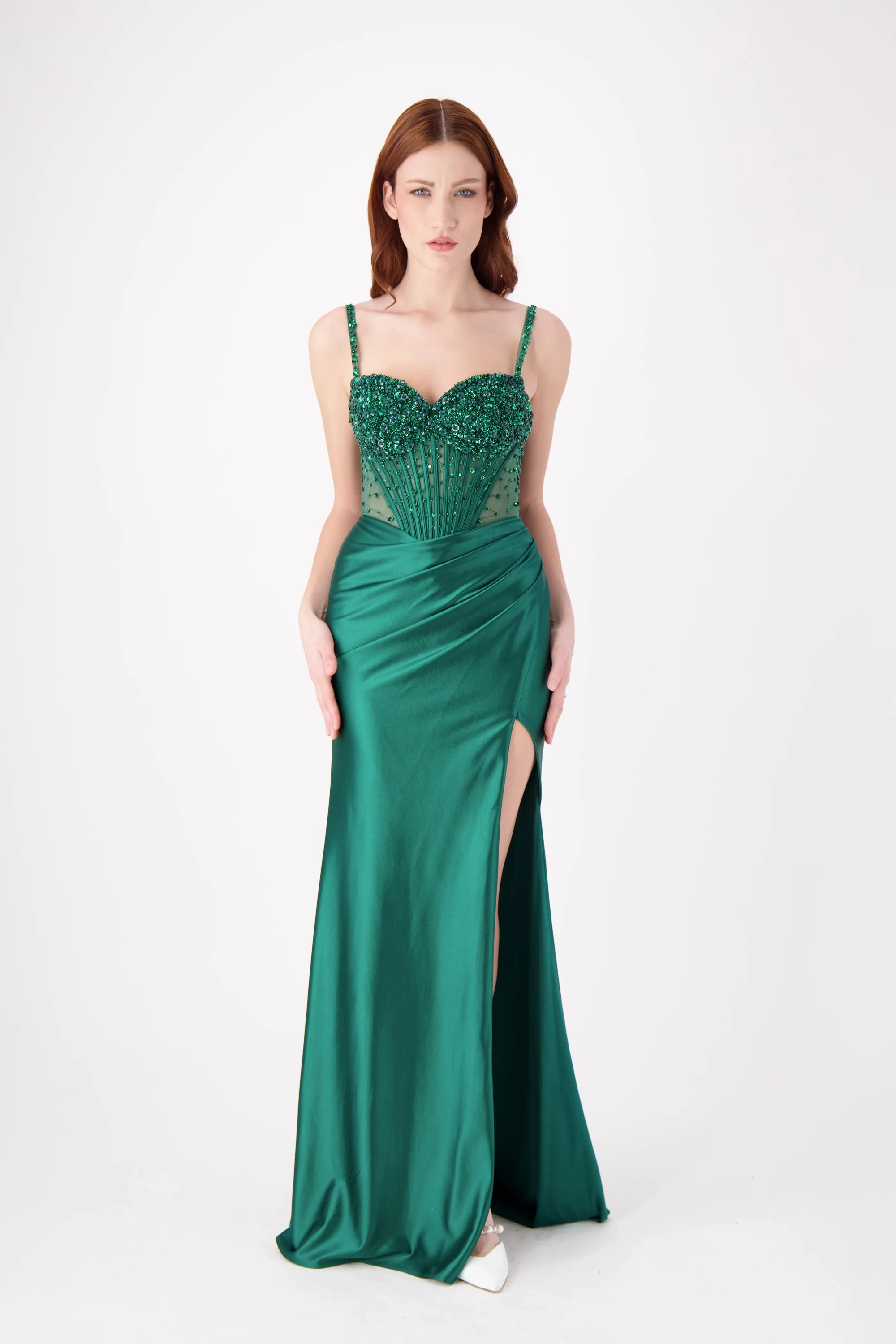 This stunning strapless fitted dress features a beautifully embellished bodice with intricate beading, complemented by a sleek skirt and a daring high slit. The flattering silhouette makes it the perfect choice for prom or any formal event where you want to stand out with elegance and confidence.