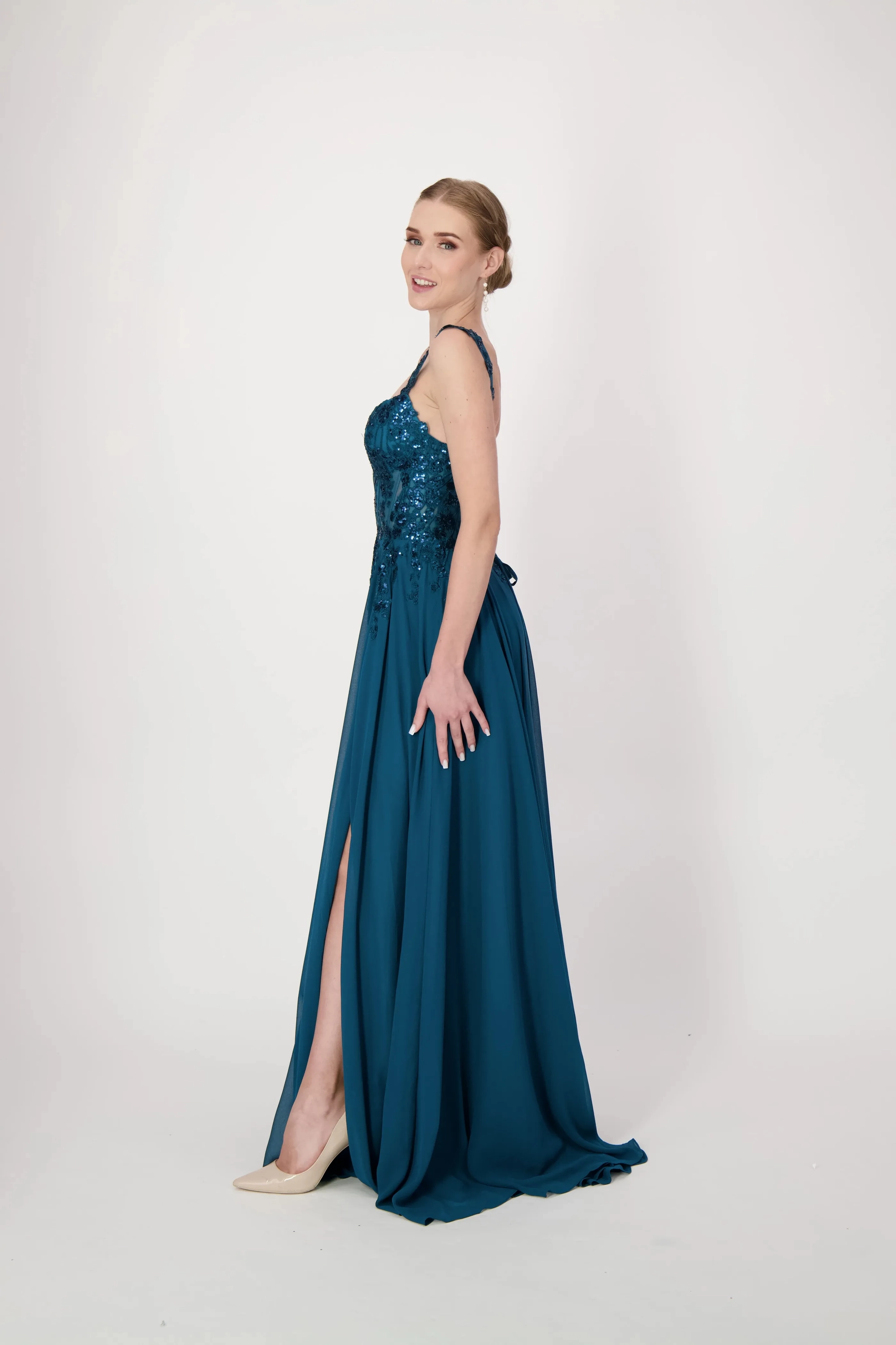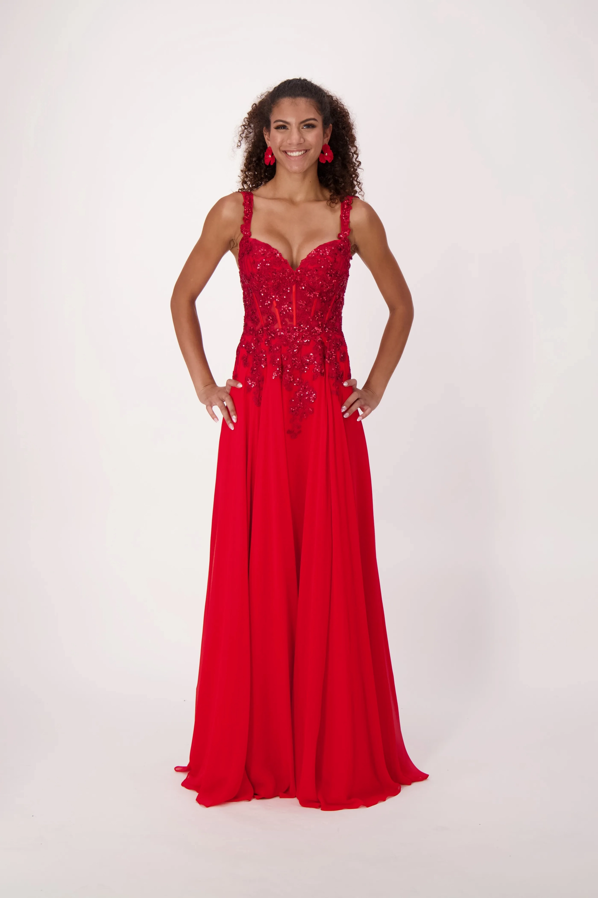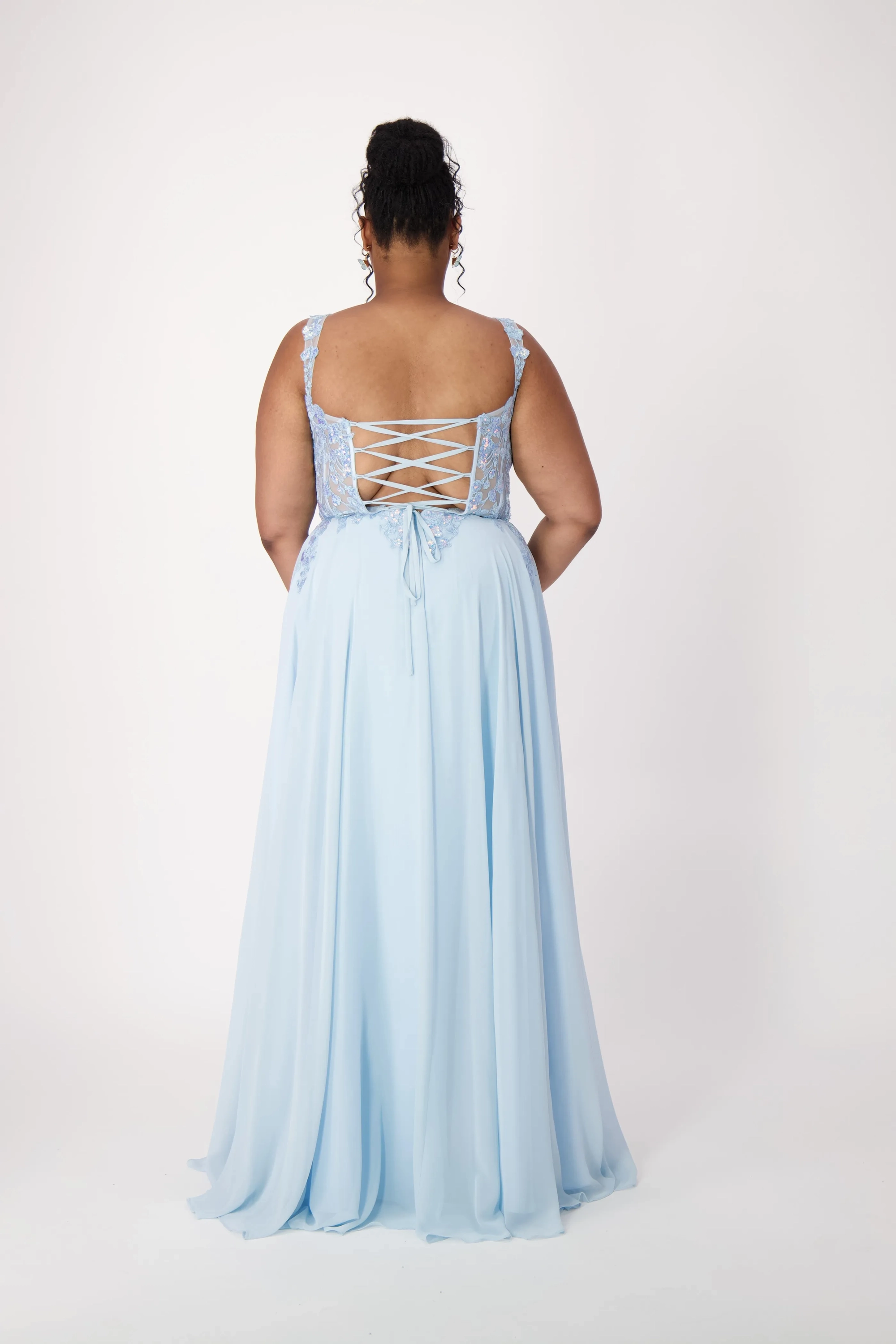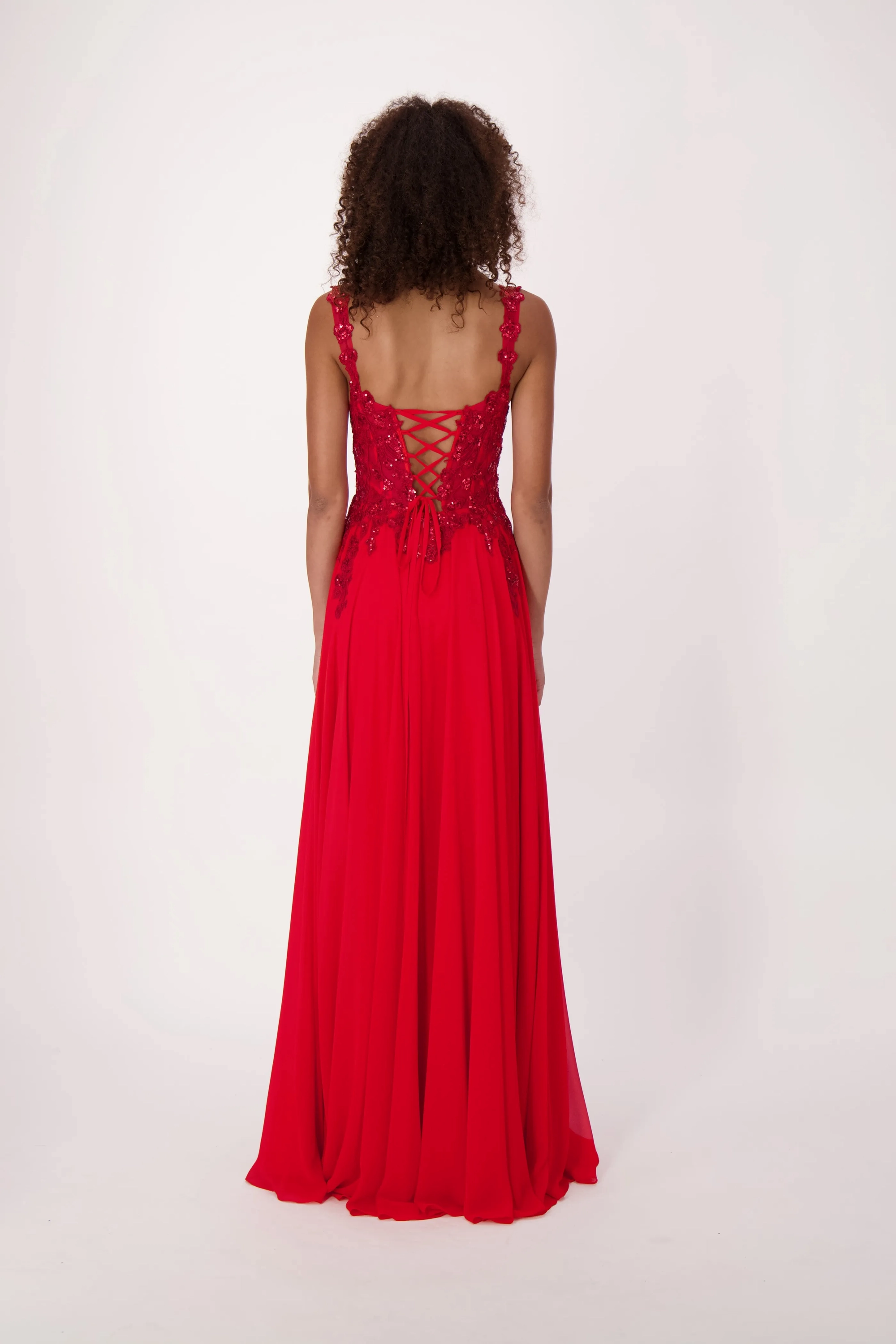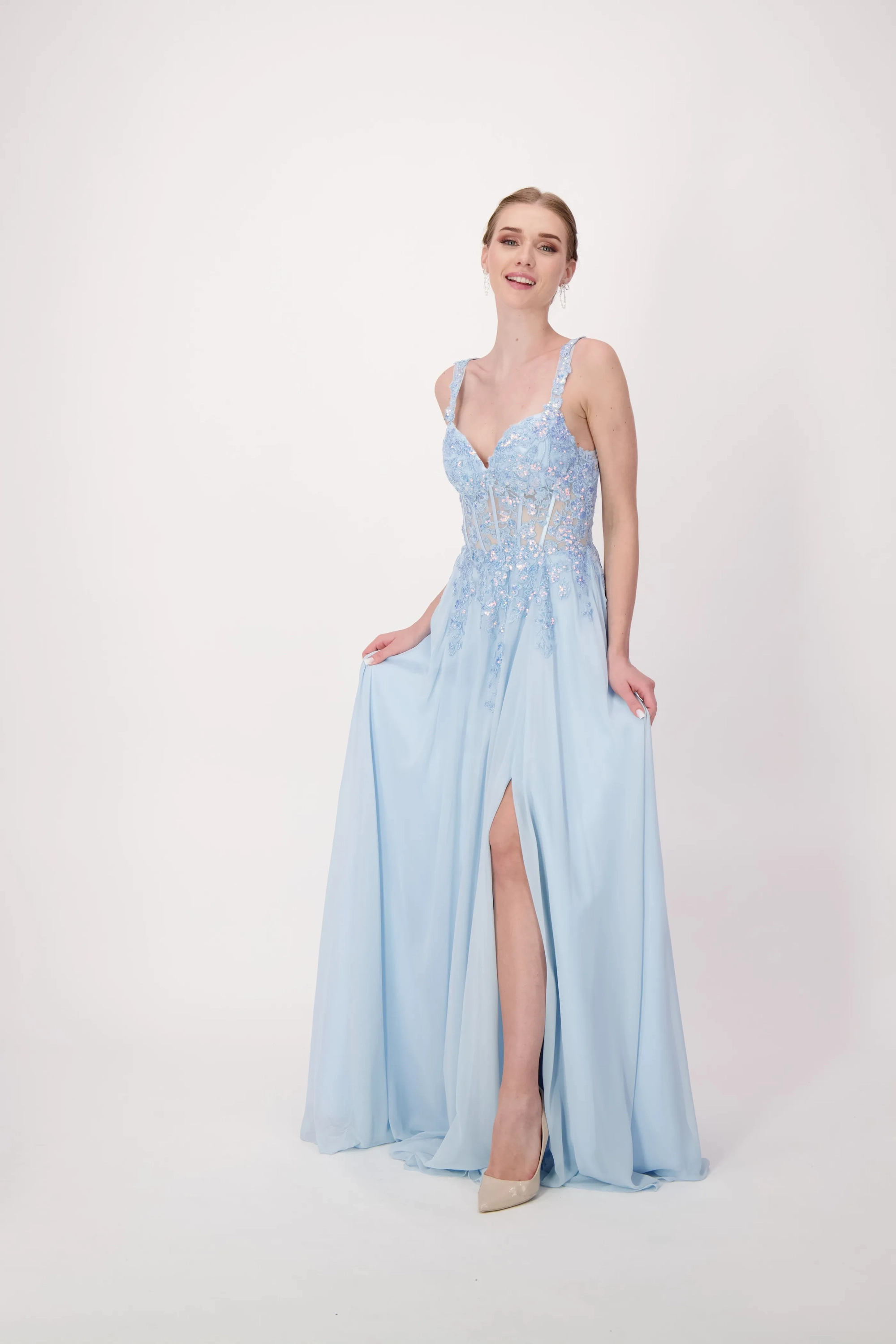 This elegant gown features a sweetheart neckline that beautifully accentuates the décolletage. The intricate lace detailing on the fitted bodice enhances the sophisticated silhouette, while the flowing A-line skirt adds a touch of timeless beauty. Perfect for formal occasions such as proms, galas, or evening events, this dress combines glamour and comfort, ensuring you stand out effortlessly. Its flattering design complements a variety of body types for a memorable, stylish look.